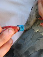 To our surprise we had in our hands an American Racing Pigeon from the Fort Wayne, Indiana pigeon racing club!!! How exciting!!! The only problem was it was only two days before we started to move and also the next day was Sunday, wherein we would be gone up north all day! Thankfully, even though we were not able to get hold of the owners, we were able to get hold of another club member and he was going to check it out. However, when he called back he said that he could find no record of the bird and that if we just made sure it had food and water for a few days, we could then let it go and hopefully it would find its way home. Monday morning came around and the pigeon was looking like it was ready to fly. Faith climbed out onto the roof and sent it on it's way. We hoped it would find the right flight wave and head back home.